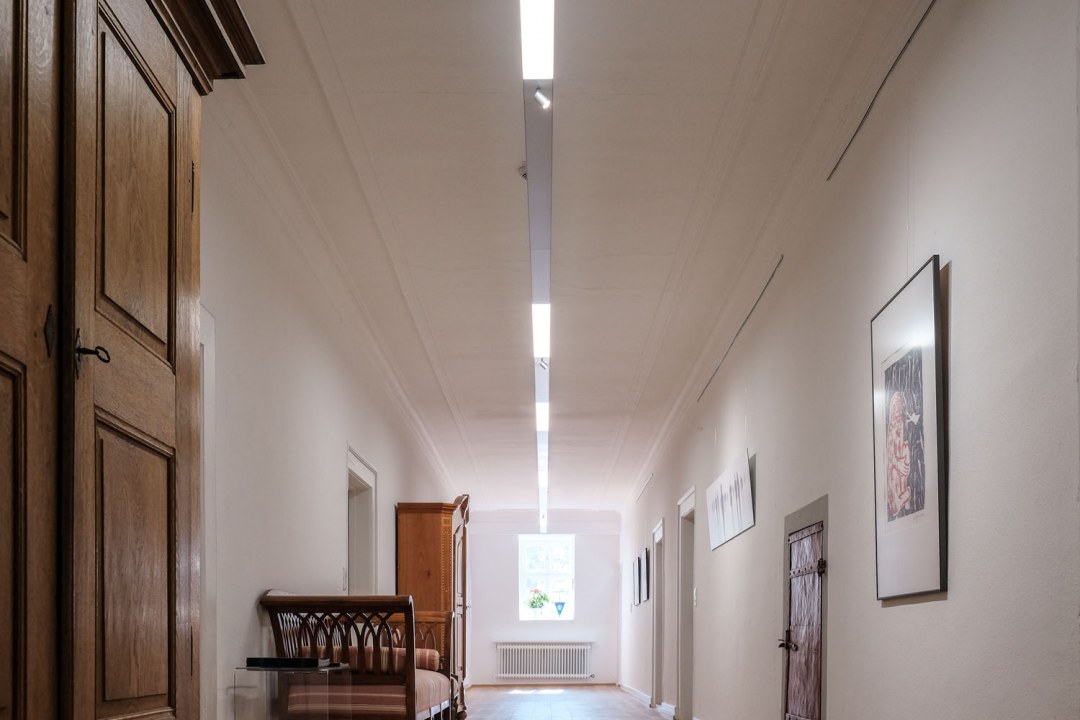 In Büro und Speisesaal wurden daher Einzelleuchten als dezente Lichtobjekte platziert. In den Fluren sorgt ein Linienlicht-System mit Einzel-Spots und Notlicht für freundliches Licht im zeitlosen Design.